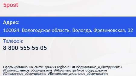 5post по адресу 160024, Вологодская область, Вологда, Фрязиновская, 32 в дальнейшем Организация, размещена в следующих категориях: