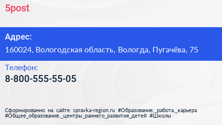 5post по адресу 160024, Вологодская область, Вологда, Пугачёва, 75 в дальнейшем Организация, размещена в следующих категориях: