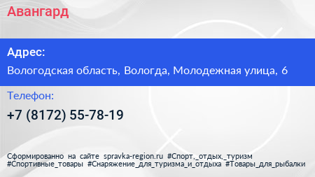 Авангард по адресу Вологодская область, Вологда, Молодежная улица, 6 в дальнейшем Организация, размещена в следующих категориях: