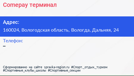 Comepay, терминал по адресу 160024, Вологодская область, Вологда, Дальняя, 24 в дальнейшем Организация, размещена в следующих категориях: