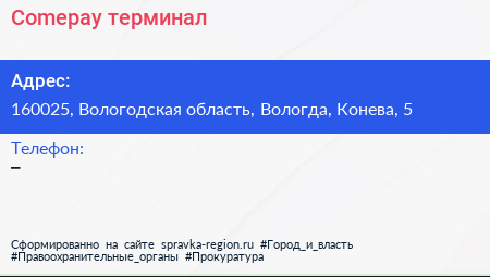 Comepay, терминал по адресу 160025, Вологодская область, Вологда, Конева, 5 в дальнейшем Организация, размещена в следующих категориях: