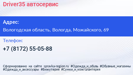 Driver35, автосервис по адресу Вологодская область, Вологда, Можайского, 69 в дальнейшем Организация, размещена в следующих категориях: