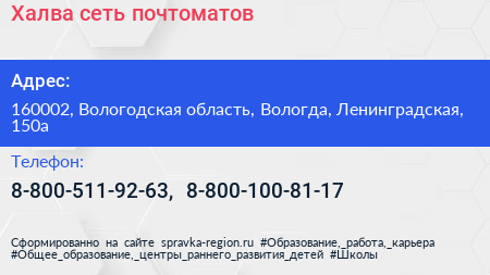 Халва, сеть почтоматов по адресу 160002, Вологодская область, Вологда, Ленинградская, 150а в дальнейшем Организация, размещена в следующих категориях: