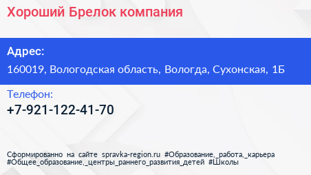 Хороший Брелок, компания по адресу 160019, Вологодская область, Вологда, Сухонская, 1Б в дальнейшем Организация, размещена в следующих категориях: