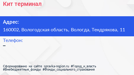 Кит, терминал по адресу 160002, Вологодская область, Вологда, Тендрякова, 11 в дальнейшем Организация, размещена в следующих категориях: