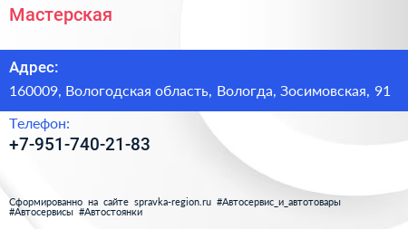 Мастерская по адресу 160009, Вологодская область, Вологда, Зосимовская, 91 в дальнейшем Организация, размещена в следующих категориях: