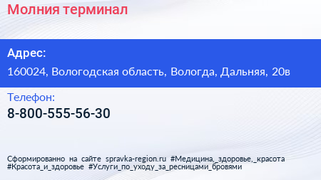 Молния, терминал по адресу 160024, Вологодская область, Вологда, Дальняя, 20в в дальнейшем Организация, размещена в следующих категориях:
