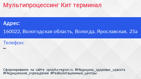 Мультипроцессинг Кит, терминал по адресу 160022, Вологодская область, Вологда, Ярославская, 25а в дальнейшем Организация, размещена в следующих категориях: