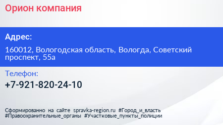 Орион, компания по адресу 160012, Вологодская область, Вологда, Советский проспект, 55а в дальнейшем Организация, размещена в следующих категориях: