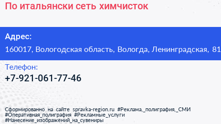 По-итальянски, сеть химчисток по адресу 160017, Вологодская область, Вологда, Ленинградская, 81 в дальнейшем Организация, размещена в следующих категориях: