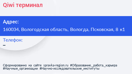 Qiwi, терминал по адресу 160034, Вологодская область, Вологда, Псковская, 8 к1 в дальнейшем Организация, размещена в следующих категориях: