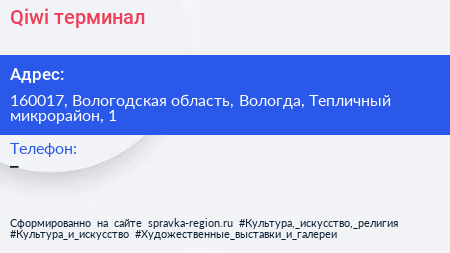 Qiwi, терминал по адресу 160017, Вологодская область, Вологда, Тепличный микрорайон, 1 в дальнейшем Организация, размещена в следующих категориях: