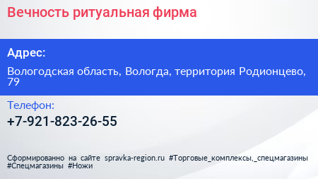 Вечность, ритуальная фирма по адресу Вологодская область, Вологда, территория Родионцево, 79 в дальнейшем Организация, размещена в следующих категориях: