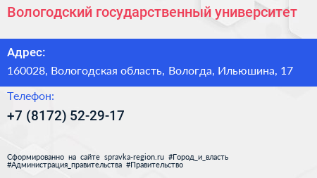 Вологодский государственный университет по адресу 160028, Вологодская область, Вологда, Ильюшина, 17 в дальнейшем Организация, размещена в следующих категориях: