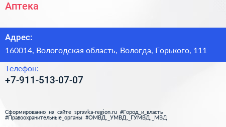 Аптека по адресу 160014, Вологодская область, Вологда, Горького, 111 в дальнейшем Организация, размещена в следующих категориях: