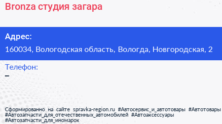 Bronza, студия загара по адресу 160034, Вологодская область, Вологда, Новгородская, 2 в дальнейшем Организация, размещена в следующих категориях: