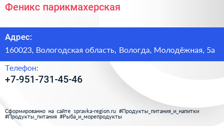 Феникс, парикмахерская по адресу 160023, Вологодская область, Вологда, Молодёжная, 5а в дальнейшем Организация, размещена в следующих категориях:
