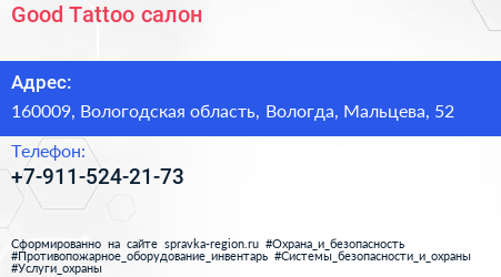 Good Tattoo, салон по адресу 160009, Вологодская область, Вологда, Мальцева, 52 в дальнейшем Организация, размещена в следующих категориях: