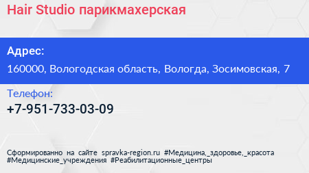 Hair Studio, парикмахерская по адресу 160000, Вологодская область, Вологда, Зосимовская, 7 в дальнейшем Организация, размещена в следующих категориях: