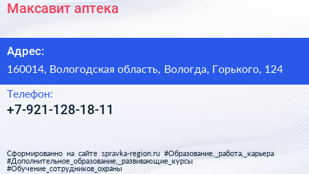Максавит, аптека по адресу 160014, Вологодская область, Вологда, Горького, 124 в дальнейшем Организация, размещена в следующих категориях:
