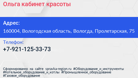 Ольга, кабинет красоты по адресу 160004, Вологодская область, Вологда, Пролетарская, 75 в дальнейшем Организация, размещена в следующих категориях: