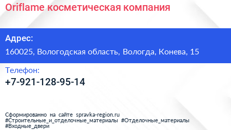 Oriflame, косметическая компания по адресу 160025, Вологодская область, Вологда, Конева, 15 в дальнейшем Организация, размещена в следующих категориях: