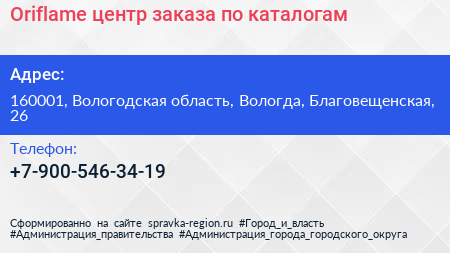Oriflame, центр заказа по каталогам по адресу 160001, Вологодская область, Вологда, Благовещенская, 26 в дальнейшем Организация, размещена в следующих категориях: