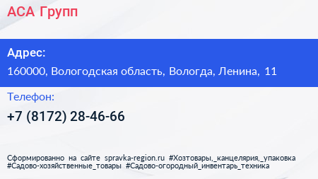 АСА Групп по адресу 160000, Вологодская область, Вологда, Ленина, 11 в дальнейшем Организация, размещена в следующих категориях: