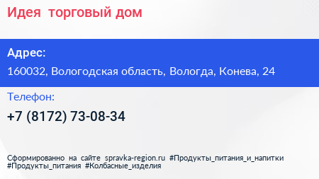 Идея+, торговый дом по адресу 160032, Вологодская область, Вологда, Конева, 24 в дальнейшем Организация, размещена в следующих категориях: