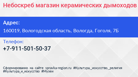 Небоскреб, магазин керамических дымоходов по адресу 160019, Вологодская область, Вологда, Гоголя, 7Б в дальнейшем Организация, размещена в следующих категориях: