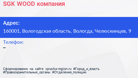 SGK-WOOD, компания по адресу 160001, Вологодская область, Вологда, Челюскинцев, 9 в дальнейшем Организация, размещена в следующих категориях: