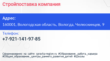 Стройпоставка, компания по адресу 160001, Вологодская область, Вологда, Челюскинцев, 9 в дальнейшем Организация, размещена в следующих категориях: