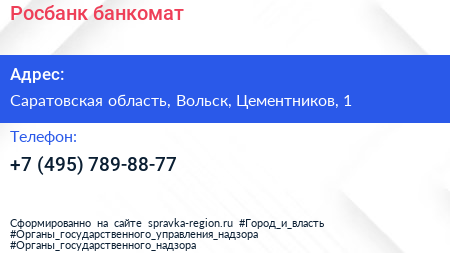Росбанк, банкомат по адресу Саратовская область, Вольск, Цементников, 1 в дальнейшем Организация, размещена в следующих категориях:
