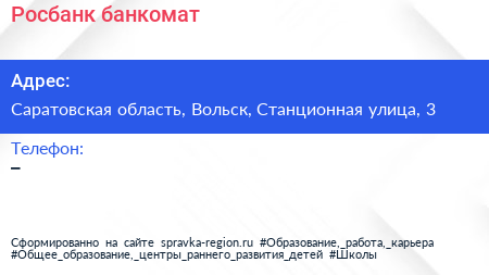 Росбанк, банкомат по адресу Саратовская область, Вольск, Станционная улица, 3 в дальнейшем Организация, размещена в следующих категориях:
