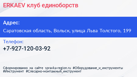 ERKAEV, клуб единоборств по адресу Саратовская область, Вольск, улица Льва Толстого, 199 в дальнейшем Организация, размещена в следующих категориях: