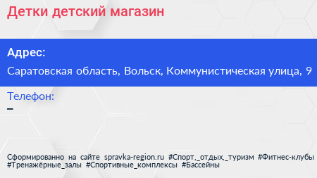 Детки, детский магазин по адресу Саратовская область, Вольск, Коммунистическая улица, 9 в дальнейшем Организация, размещена в следующих категориях: