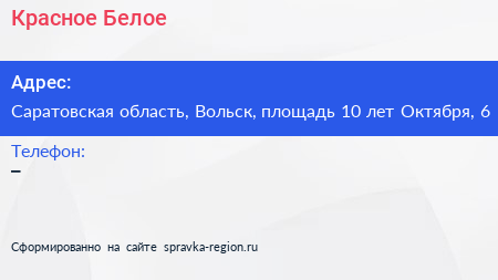 Красное & Белое по адресу Саратовская область, Вольск, площадь 10 лет Октября, 6 в дальнейшем Организация, размещена в следующих категориях: