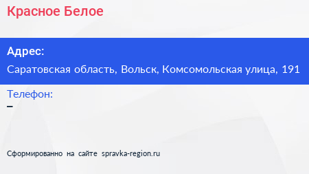 Красное & Белое по адресу Саратовская область, Вольск, Комсомольская улица, 191 в дальнейшем Организация, размещена в следующих категориях: