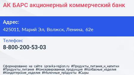 АК БАРС, акционерный коммерческий банк по адресу 425011, Марий Эл, Волжск, Ленина, 62е в дальнейшем Организация, размещена в следующих категориях: