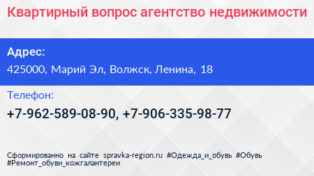 Квартирный вопрос, агентство недвижимости по адресу 425000, Марий Эл, Волжск, Ленина, 18 в дальнейшем Организация, размещена в следующих категориях: