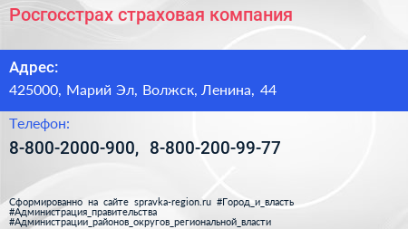 Росгосстрах, страховая компания по адресу 425000, Марий Эл, Волжск, Ленина, 44 в дальнейшем Организация, размещена в следующих категориях: