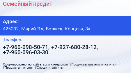 Семейный кредит по адресу 425032, Марий Эл, Волжск, Копцева, 3а в дальнейшем Организация, размещена в следующих категориях: