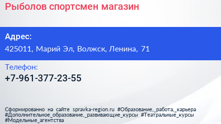 Рыболов-спортсмен, магазин по адресу 425011, Марий Эл, Волжск, Ленина, 71 в дальнейшем Организация, размещена в следующих категориях:
