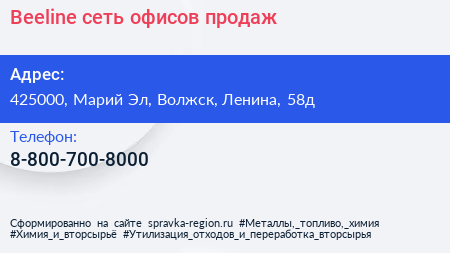 Beeline, сеть офисов продаж по адресу 425000, Марий Эл, Волжск, Ленина, 58д в дальнейшем Организация, размещена в следующих категориях: