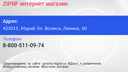 ZIPRF, интернет-магазин по адресу 425011, Марий Эл, Волжск, Ленина, 60 в дальнейшем Организация, размещена в следующих категориях:
