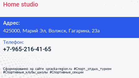 Home studio по адресу 425000, Марий Эл, Волжск, Гагарина, 23а в дальнейшем Организация, размещена в следующих категориях: