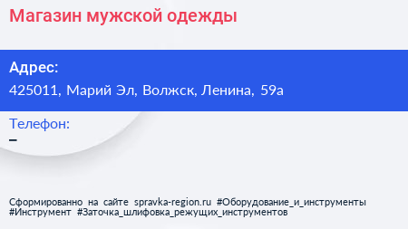 Магазин мужской одежды по адресу 425011, Марий Эл, Волжск, Ленина, 59а в дальнейшем Организация, размещена в следующих категориях: