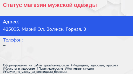 Статус, магазин мужской одежды по адресу 425005, Марий Эл, Волжск, Горная, 3 в дальнейшем Организация, размещена в следующих категориях: