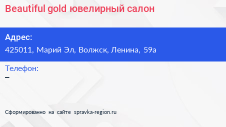 Beautiful gold, ювелирный салон по адресу 425011, Марий Эл, Волжск, Ленина, 59а в дальнейшем Организация, размещена в следующих категориях:
