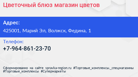Цветочный блюз, магазин цветов по адресу 425001, Марий Эл, Волжск, Федина, 1 в дальнейшем Организация, размещена в следующих категориях:
